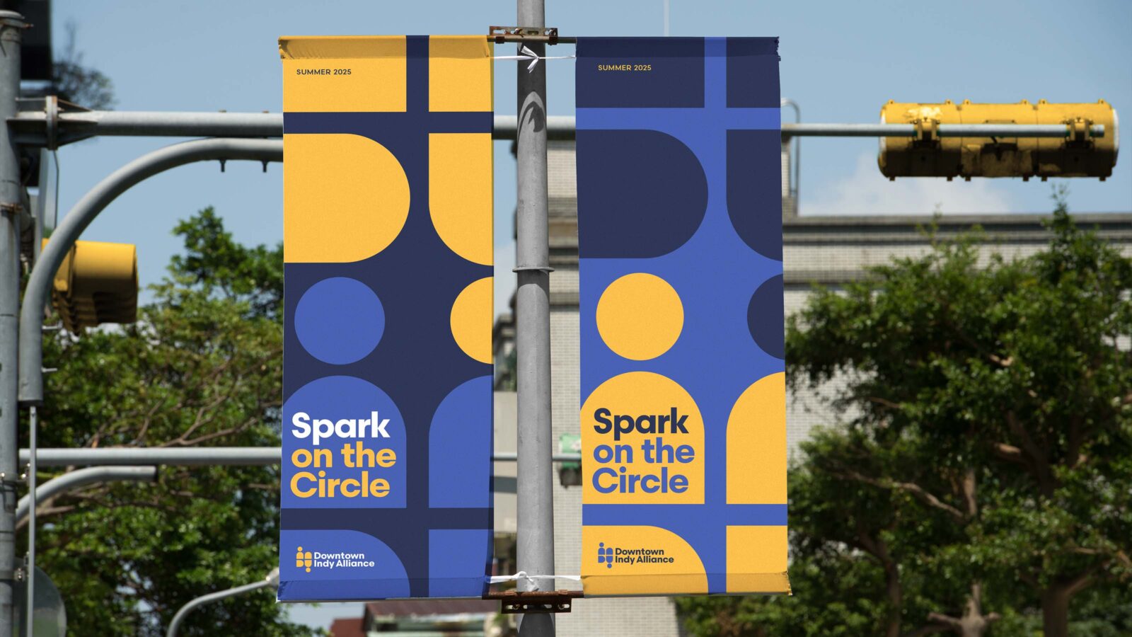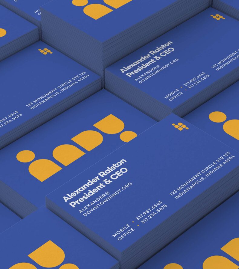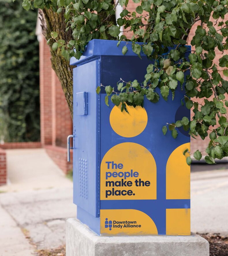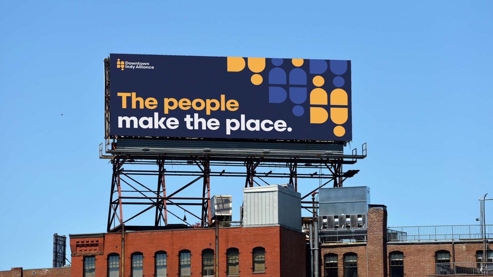 Alongside the narrative, we developed a visual system that balances professionalism with vibrancy. The bold shapes are inspired by the Mile Square, Monument Circle, and the city’s grid: a nod to the literal and metaphorical building blocks of Indianapolis. Energetic color and a playfully flexible “INDY” mark capture the movement, warmth, and creativity that are ever present Downtown while remaining approachable for everyday communication. Through visuals and messaging, we refined and amplified the idea at the heart of their work: the people make the place.